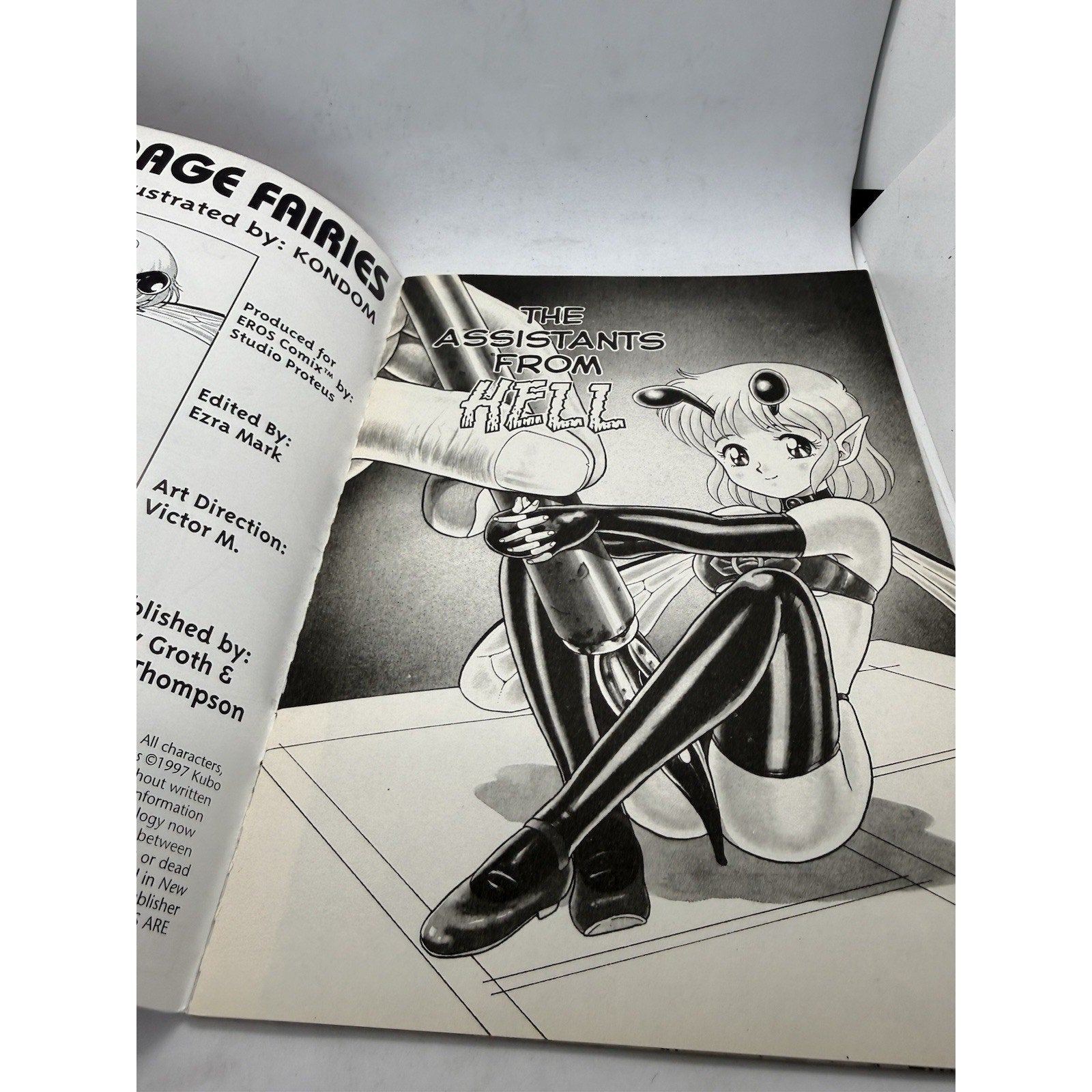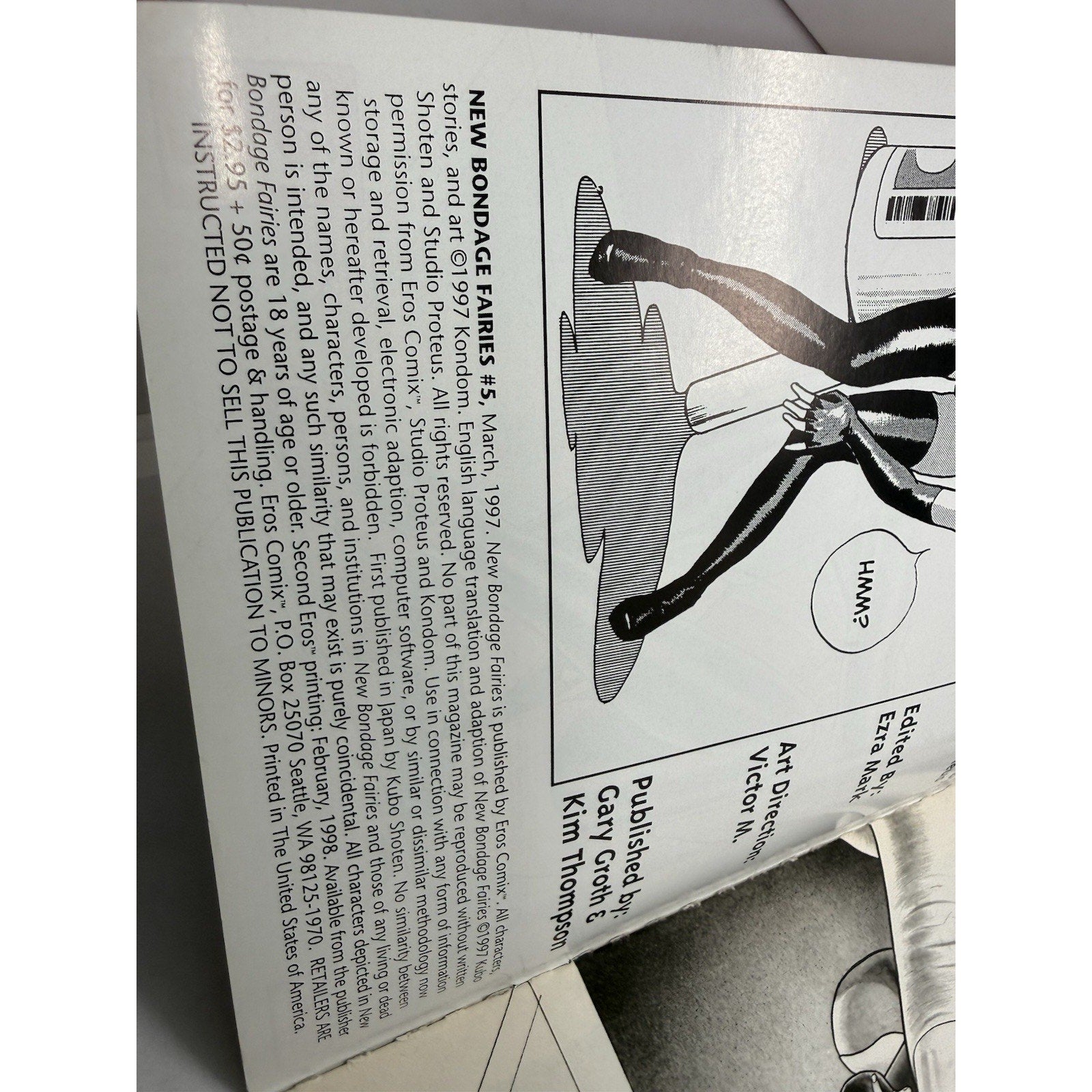 Vintage 1997 issue from Eros Comix and Studio Proteus. This collectible English-language manga is part of the New Bondage Fairies series illustrated by Kondom. Light spine wear and minor corner creasing from handling. Clean interior pages and intact staples.
