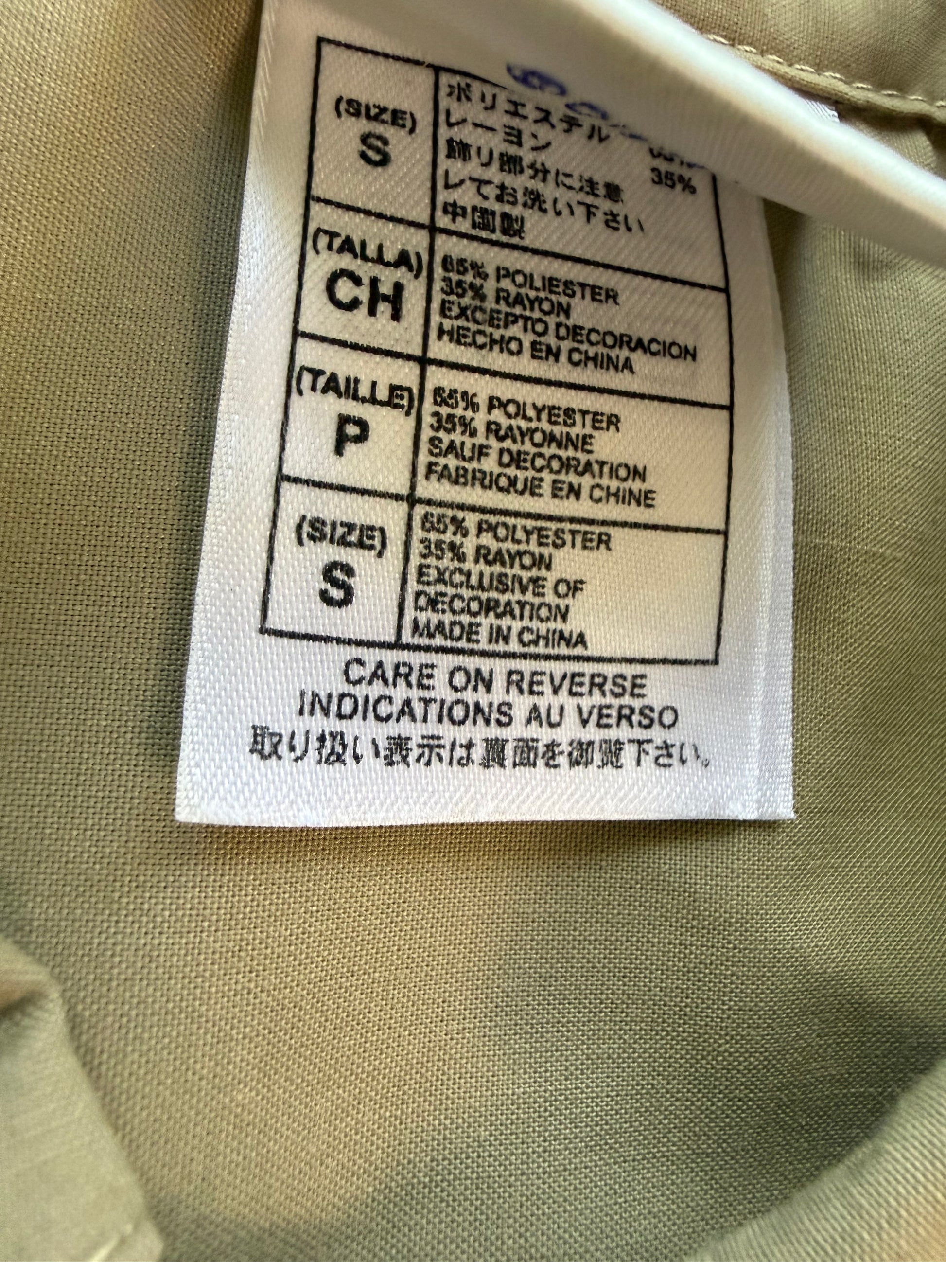 Disneyland Resort official. 65% polyester / 35% rayon. Made in China. Size S. Chest 22 in, length 28 in. Full embroidery front, back, and both sleeves. General wear, no major staining or damage.