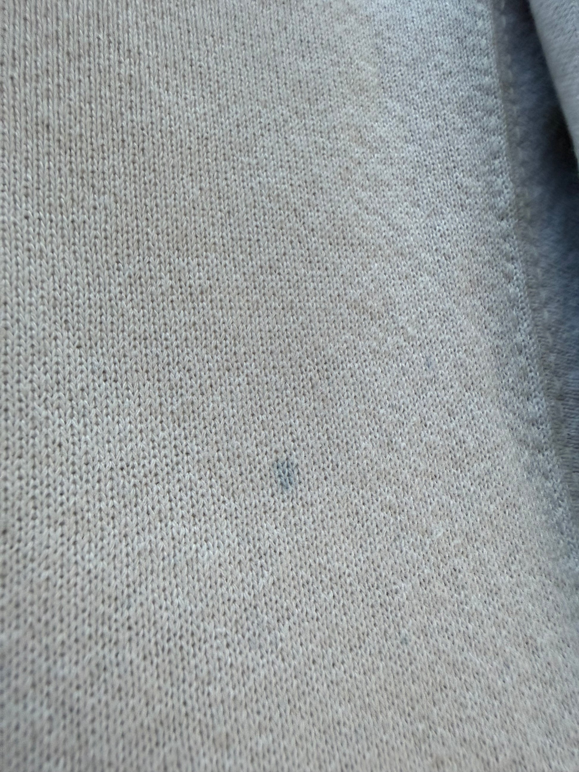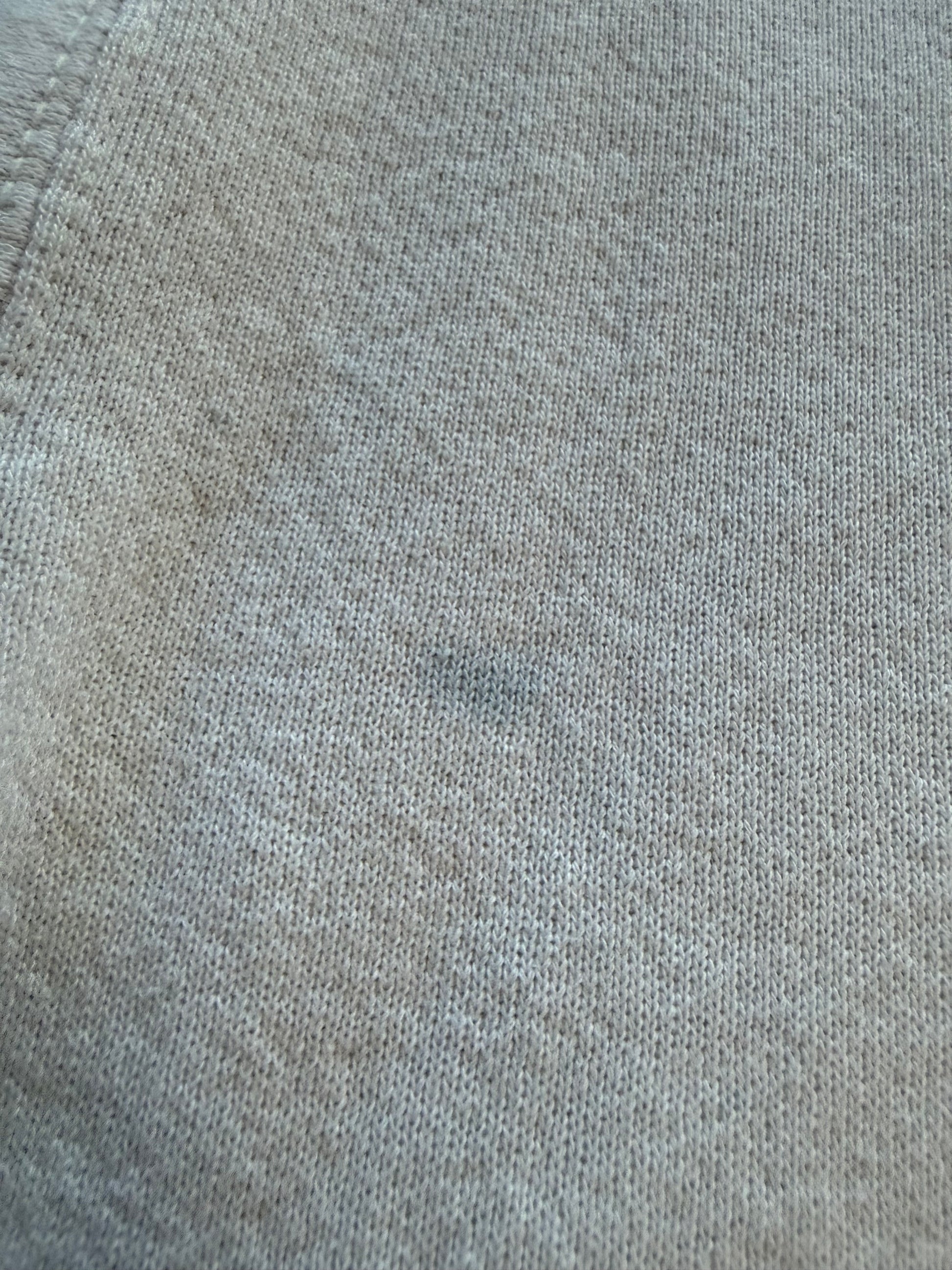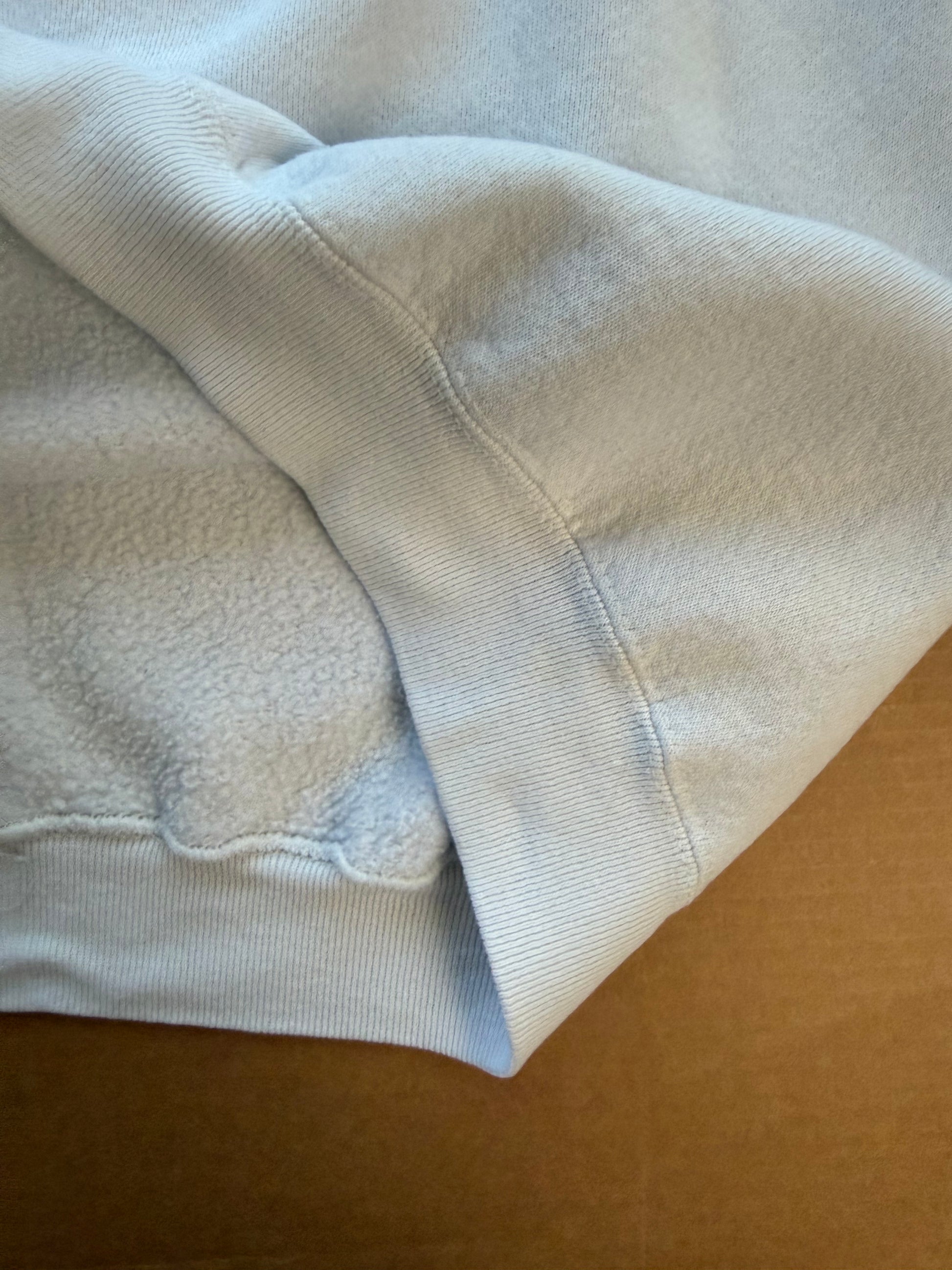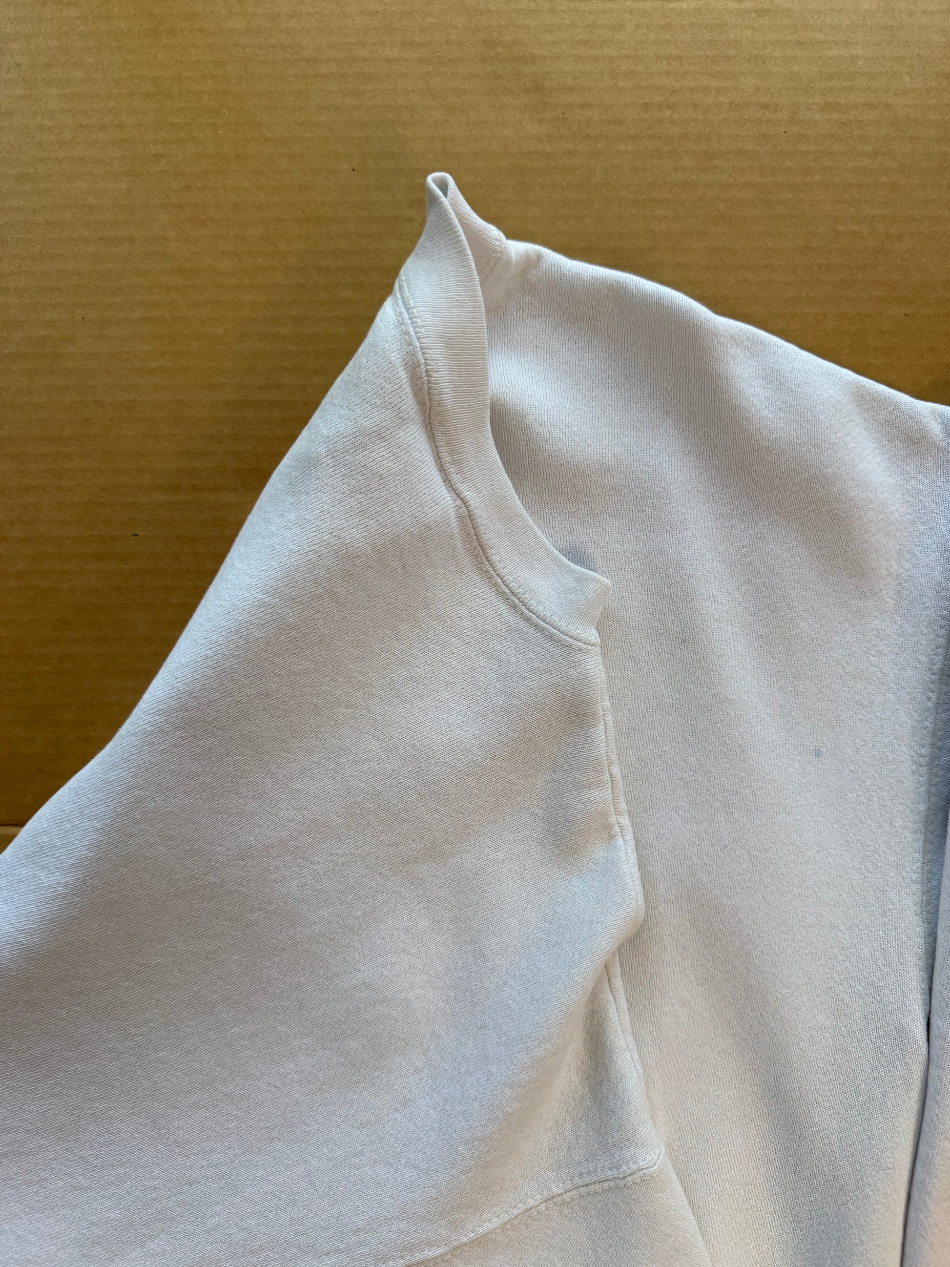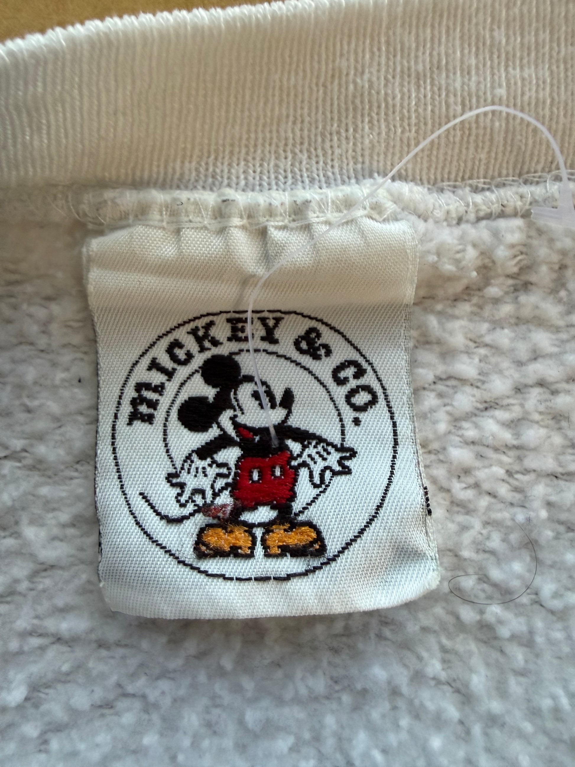 Mickey and Co. crewneck sweatshirt. White. No size tag. Chest 22.5 in, length 25 in. Fits L. Condition: two small dark spots on back, shown in photos. No other damage or staining.